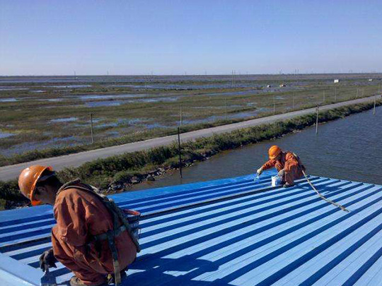 對于金屬屋面,需要保證其干凈整潔,并且使用砂紙將生銹的地方打磨干凈,再涂上基層涂料。可以選擇噴涂或刷涂的方式,每次涂刷要保證前一次已經干透。對于金屬屋面天溝縫的地方,可以做局部的防水,再刷上涂料。